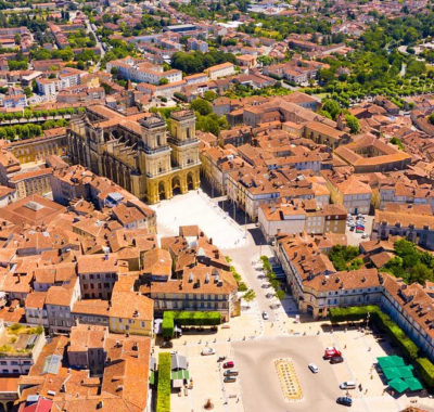 Capitale historique de la Gascogne, Auch est une ville incontournable du Gers. Elle est célèbre pour sa majestueuse cathédrale Sainte-Marie, un chef-d’œuvre de l’art gothique et Renaissance, ainsi que pour son escalier monumental de 370 marches qui offre une vue imprenable sur la ville et la vallée du Gers.